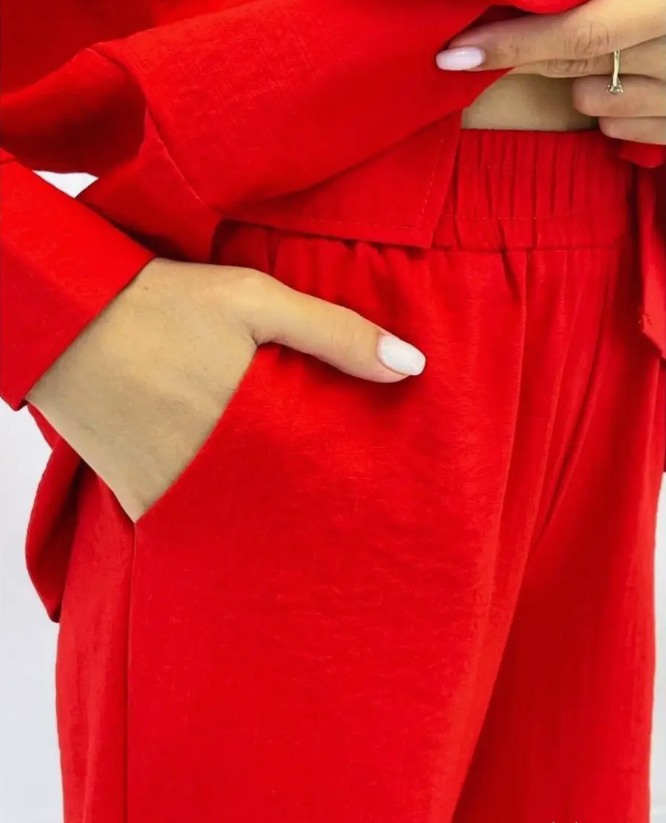 | Костюм льняной с прямыми широкими брюками палаццо и рубашкой красный | 42 |